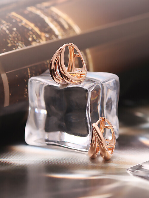 • 부드럽고 볼드한 라운드 쉐입이 두줄로 매치된 링귀걸이