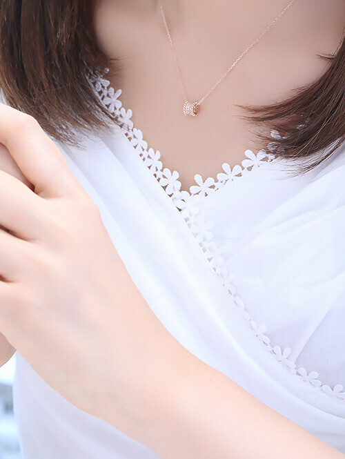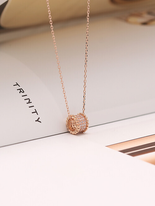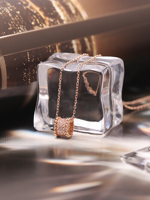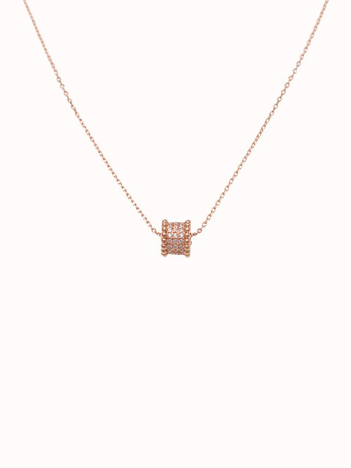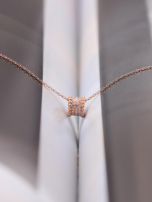 • 엠보 테두리가 둘러진 원통 롤러 장식에 큐빅이 가득한 데일리목걸이