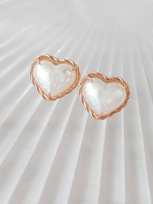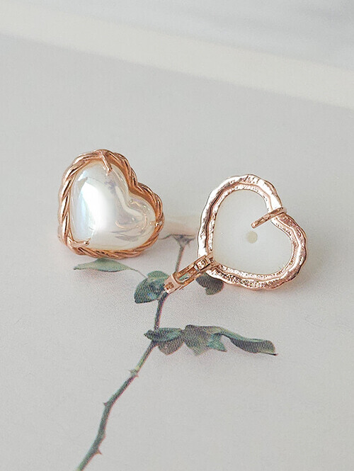 • 영롱한 빛감을 자아내는 진주에 러블리함을 한스푼-! 빈티지한 무드의 하트진주 귀걸이