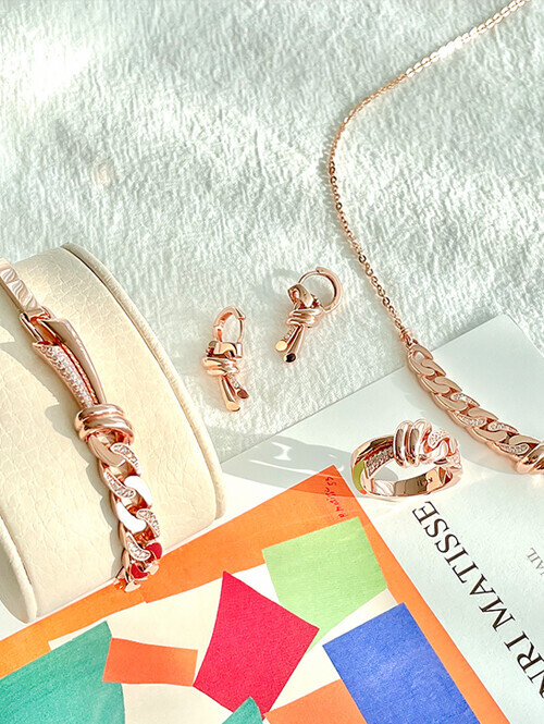 • 관능적인 매력이 가득 담긴 드레시한 무드의 체인 매듭 반지