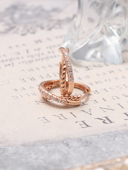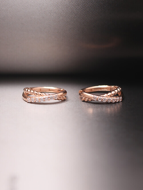 • 꼬임 라인과 큐빅 라인이 X자로 교차된 세련된 무드의 링 귀걸이
