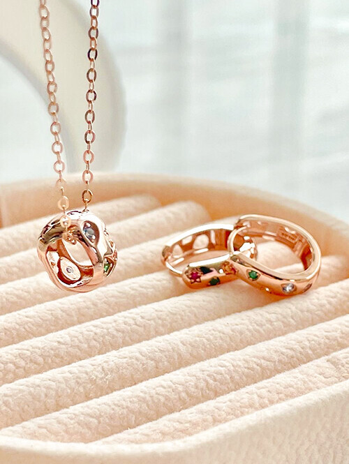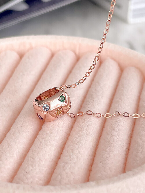• 도톰한 라운드 링 쉐입에 다양한 도형 펀칭과 컬러큐빅이 세팅된 영롱한 펜던트