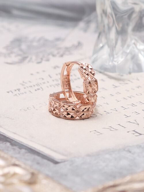 • 컷팅 육각 쉐입이 두줄로 나열된 감각적인 링 귀걸이