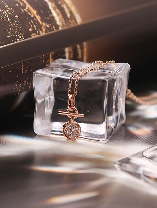 • 써클 큐빅 딸랑이와 토글바 장식이 믹스된 패셔너블한 무드의 포인트 펜던트