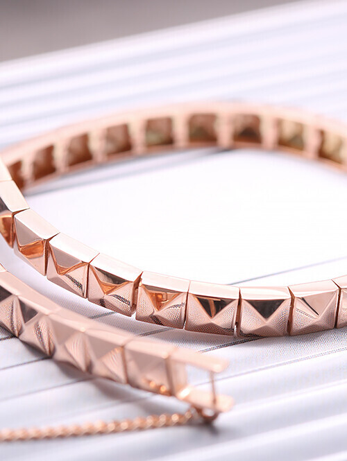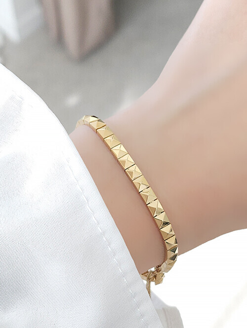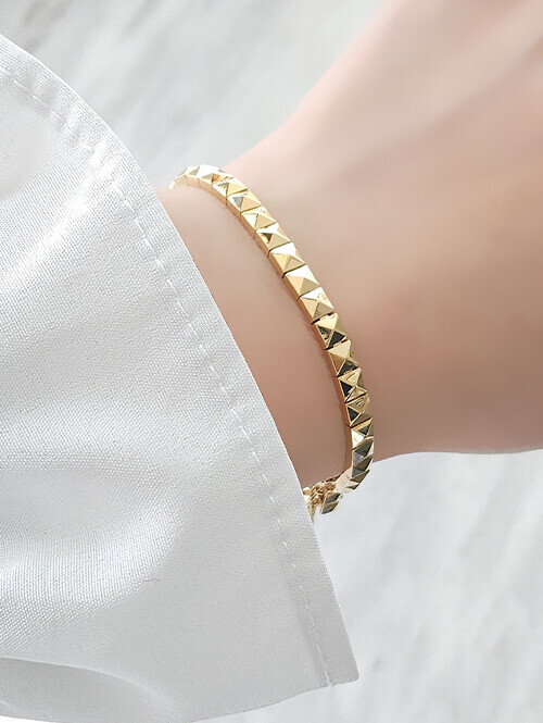 • 사각 뿔 장식이 유니크하고 스타일리시한 분위기를 자랑하는 레이어드 팔찌