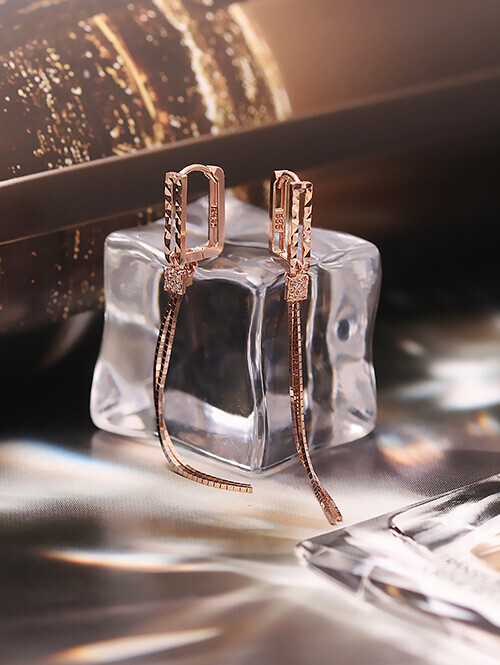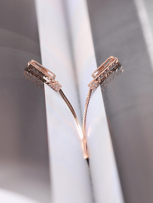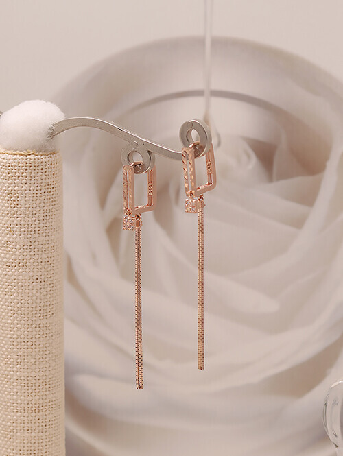• 슬림한 컷팅 스퀘어 아래로 롱 체인이 길게 드롭된 스타일리시한 무드의 귀걸이
