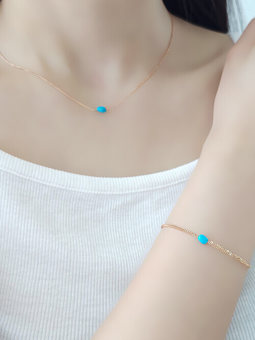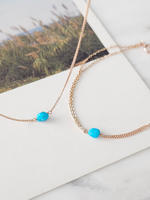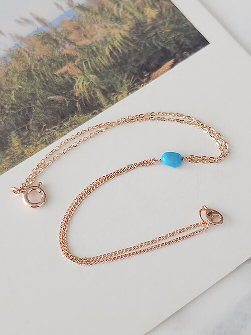 • 14K 18K 미니멀 천연 터키석 원석 두줄팔찌 상품번호 : 8514