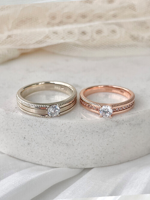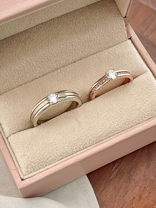 • 클래식한 웨딩밴드의 정석,영롱한 메인큐빅이 우아하게 빛나는 커플링