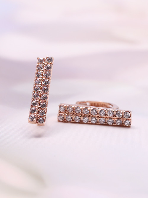 • 반짝이는 두 개의 화이트큐빅 사이로 슬림한 큐빅스틱이 연결된 귀걸이