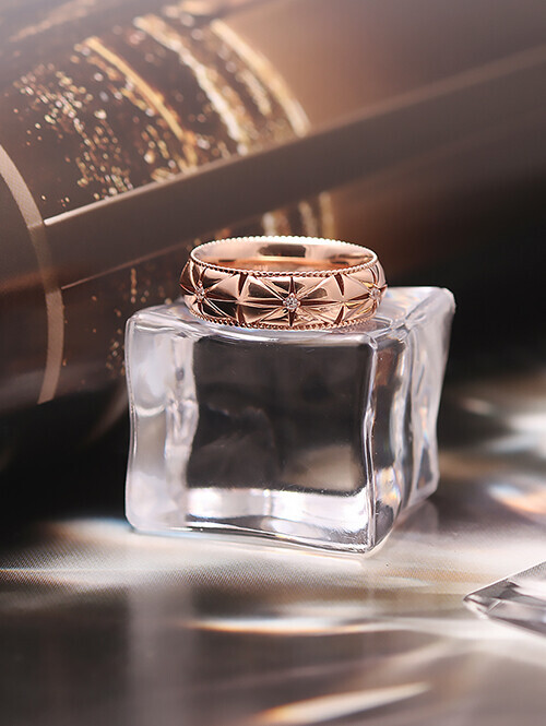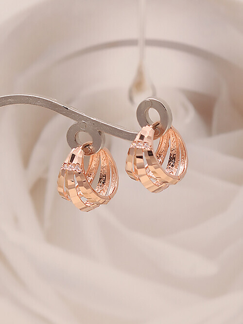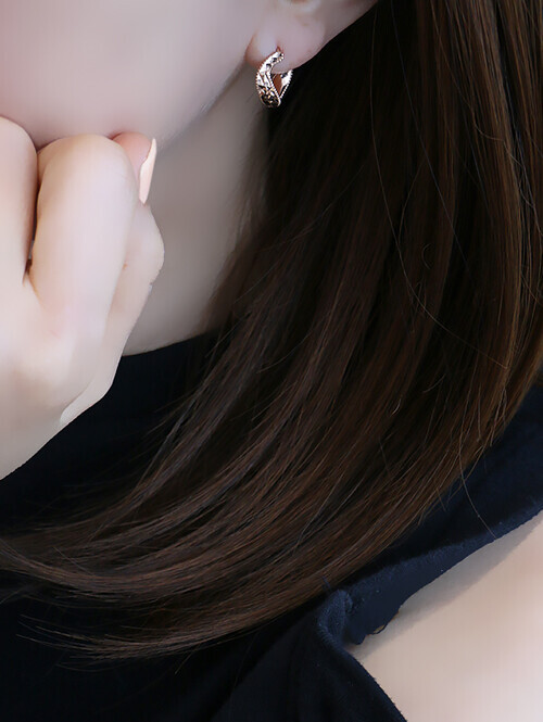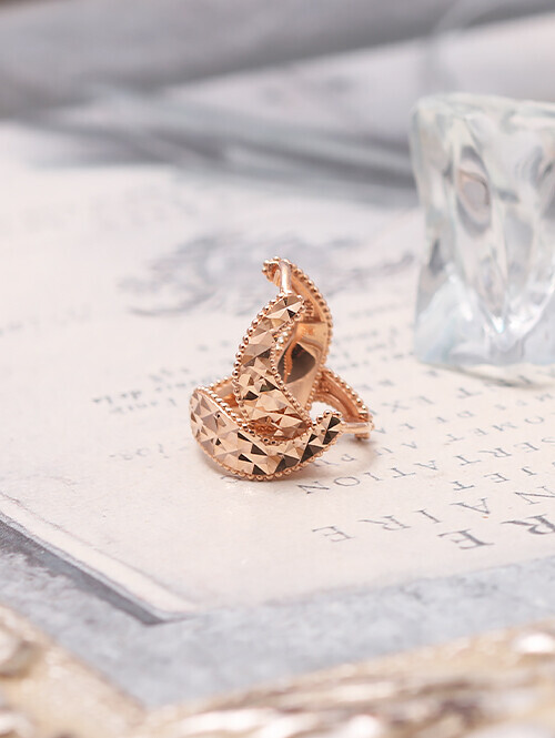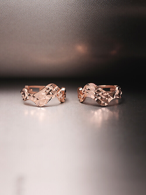 • 웨이브 링 바디에 글로시한 컷팅패턴이 더해진 고급스러운 무드의 링귀걸이