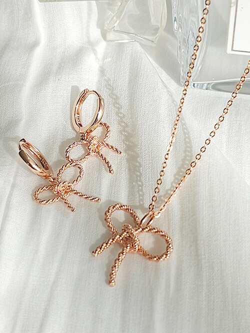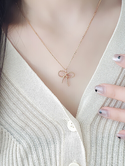 • 반짝이는 로프체인이 리본 모양으로 매듭진 여리여리함 가득한 목걸이