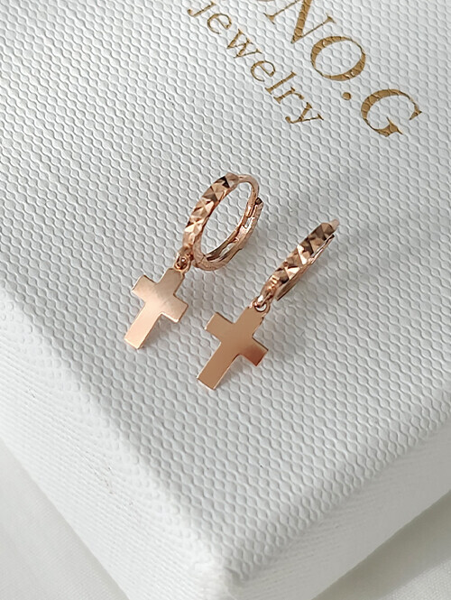 • 14K 18K 컷팅링 미니십자가 딸랑이 귀걸이 상품번호 : 8763