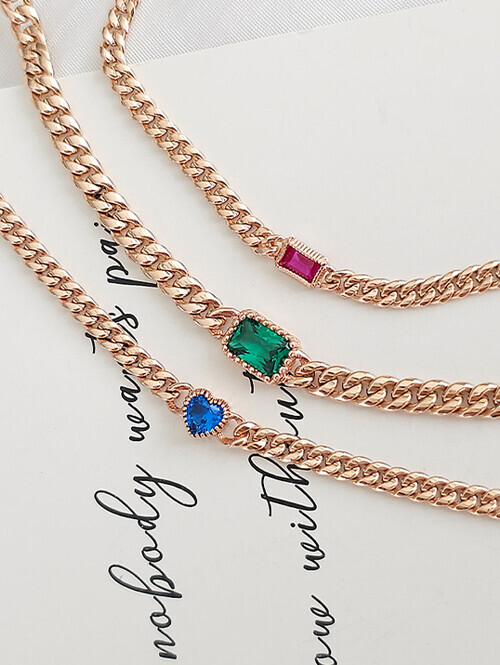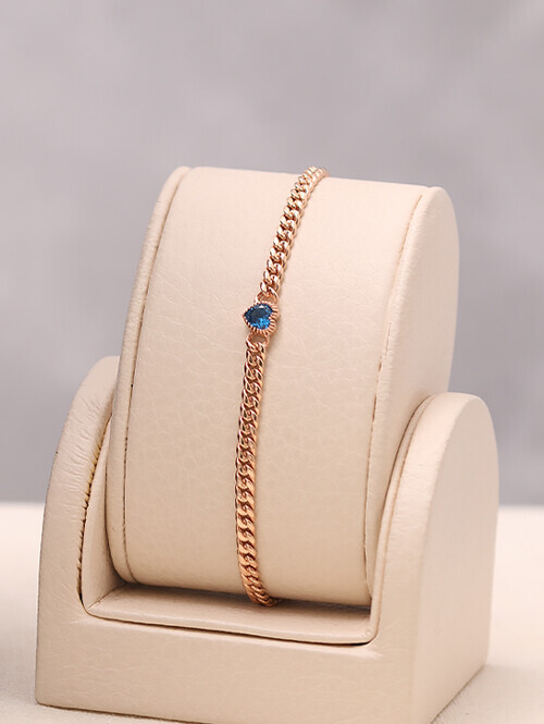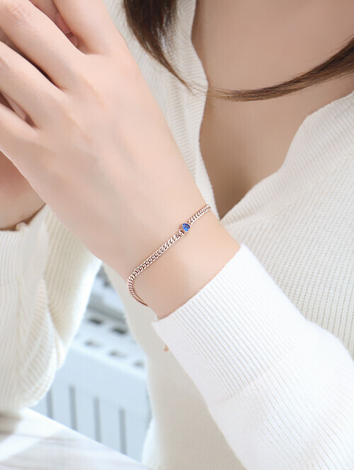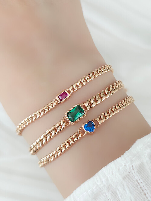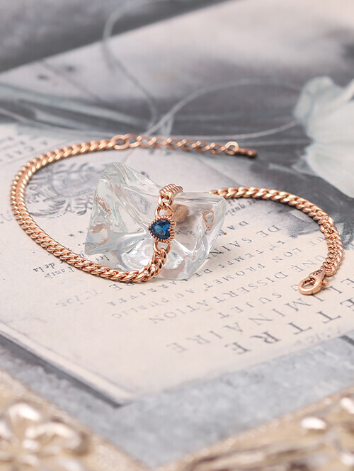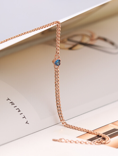 • 영롱한 블루토파즈 큐빅과 볼륨감있는 할로우체인이 매치된 감각적인 포인트 팔찌