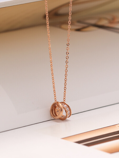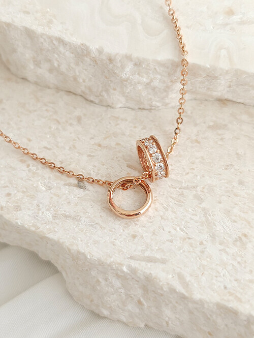 • 심플한 민자 링 펜던트와 글로시한 큐빅링 펜던트로 투웨이 연출이 가능한 모던한 무드의 목걸이