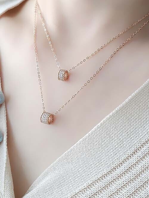 • 14K 18K 글리터 엠보 랩다이아몬드 원통 펜던트(두줄,세줄/체인별도상품) 상품번호 : 9114